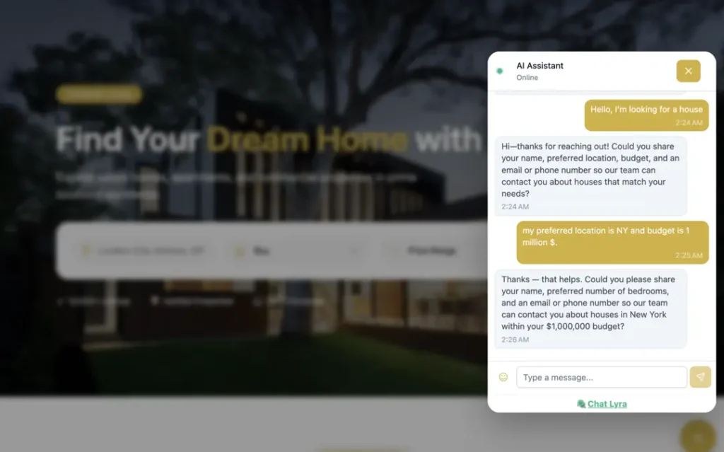 ChatLyra, An AI-powered chatbot platform designed to automate customer support, capture high-quality leads, and boost conversions—24/7. ChatLyra seamlessly integrates with your website to deliver instant, human-like responses, streamline communication, and turn visitors into paying customers effortlessly.